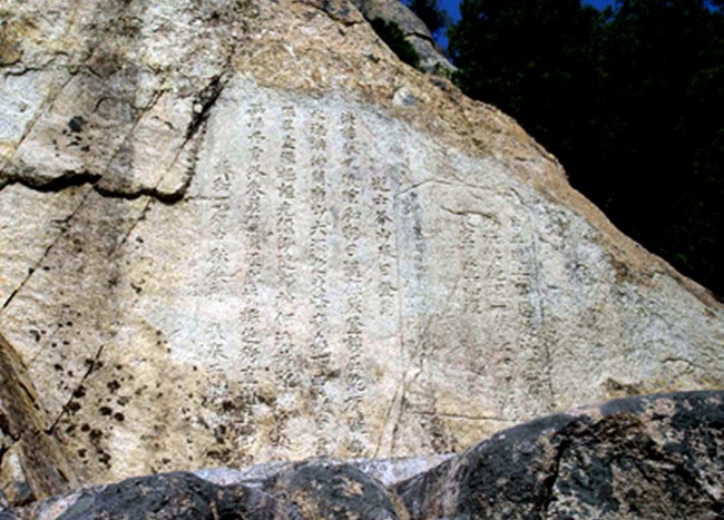 大基山海拔478米,自山谷至山頂分布?xì)v代摩崖刻石24處。北魏光州刺史、著名書法家鄭道昭于公元512年在此山留下寶貴題刻12處,均刻在山內(nèi)險(xiǎn)峻的摩崖之上,主要刻石有《登大基山詩(shī)》、《中明之壇》等,同云峰山鄭道昭刻石成一體,同為國(guó)際書法旅游專線,每年接待日本書法團(tuán)體約600人次,1998年被國(guó)務(wù)院定為國(guó)家級(jí)重點(diǎn)文物保護(hù)單位。