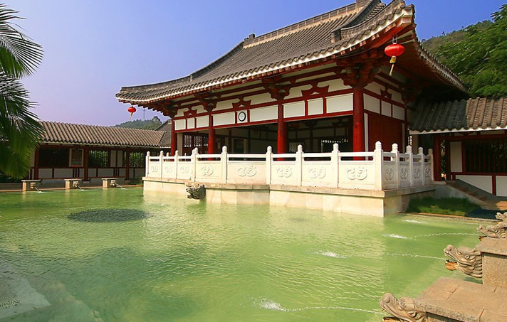 九龍池位于玉溪市州城西北10公里奇黎山下的九龍池,又名奇黎溪, 是當?shù)刂募丫皠俚刂?。位于玉溪市州城西?0公里奇黎山下的九龍池,又名奇黎溪, 是當?shù)刂募丫皠俚刂弧?據(jù)《重修九龍池碑記》載, 寺廟初創(chuàng)于清朝之前, 幾經(jīng)擴建,到公元1729年(雍正七年),又“新作石橋,長虹臥波,幾于騰空直上。繼修大寺閣,燃然一新,儼若普陀”。