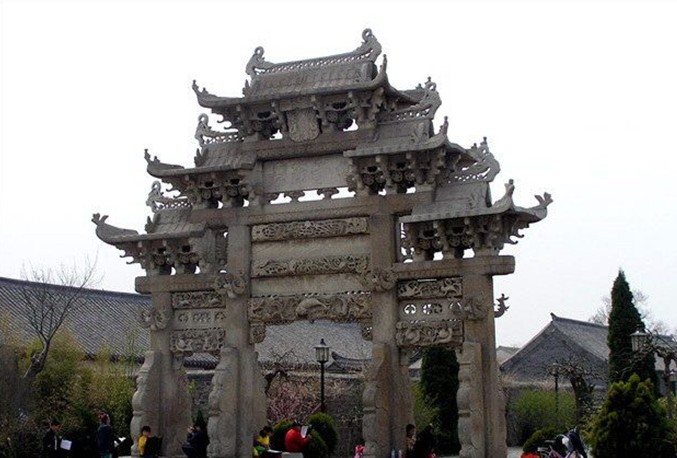 位于蓬萊城牌坊里街東西兩端,東為“母子節(jié)孝”坊,西為“父子總督”坊,明嘉靖四十四年,朝廷為旌表戚氏家族而建。兩坊間距140米,均系四柱三間式出檐多脊花崗巖石雕坊,高9.5米,寬8.3米,進深2.7米,正間上下三坊,側(cè)間各有兩坊,分別雕飾花木鳥獸等圖案,兩坊中間有多行字。兩座牌坊巍峨挺拔,氣勢雄偉,構(gòu)圖豐滿,雕鏤精細,具有很高的歷史價值和藝術(shù)價值,是國內(nèi)少見的明代大型石雕珍品。