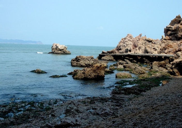 傳說八仙在蓬萊閣上飲酒作樂,酒酣之后,各持寶器走進(jìn)大海,在風(fēng)濤海浪里顯示各自的神通,不一會(huì)兒便漂向了遙遠(yuǎn)的海天相接處,而他們的形骸卻羽化成八塊礁石。這片礁石,已經(jīng)被海浪沖涮出一副滄桑模樣,但是仔細(xì)辨認(rèn),張果老的驢子,鐵拐李的丫丫葫蘆,以及八位仙人或臥或仰、或坐或立的形態(tài)卻依稀可見。