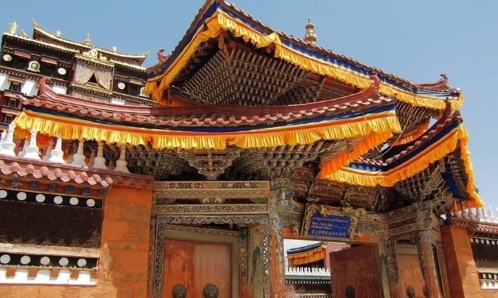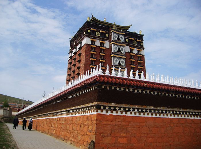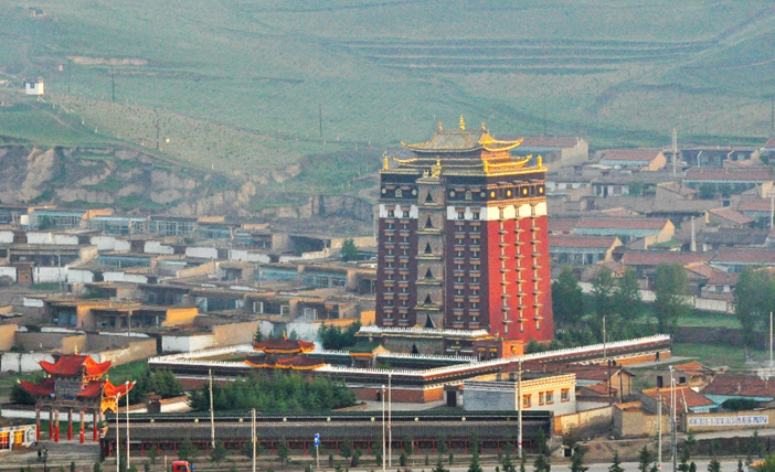 位于甘肅安多藏區(qū)合作市,它的全稱是“安多合作米拉日巴九層佛閣”,名字雖然有點(diǎn)兒長,卻也講得很明白。始建于清乾隆四十二年(1777年),原建樓閣已毀于“文革”。現(xiàn)存建筑重建于1988年5月,歷時(shí)四年落成。米拉日巴佛閣是為紀(jì)念米拉日巴而修建的佛閣。是藏傳佛教噶舉派(白教)在安多藏區(qū)最主要的填充院。