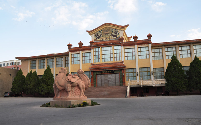敦煌市博物館,位于敦煌市陽(yáng)關(guān)東路,是以歷史文物為主的綜合地志性館,現(xiàn)館址建于1984年,主樓三層,建筑面積2400平方米。 樓前大院內(nèi)有象征絲綢 古道上牽駝跋涉的大型雕塑一組。館藏文物有石、陶、瓷、木器、寫經(jīng)、漢簡(jiǎn)、絲綢、珠玉、花磚、書畫、拓片、古幣、鐵器、銅器等14類,4000多件。