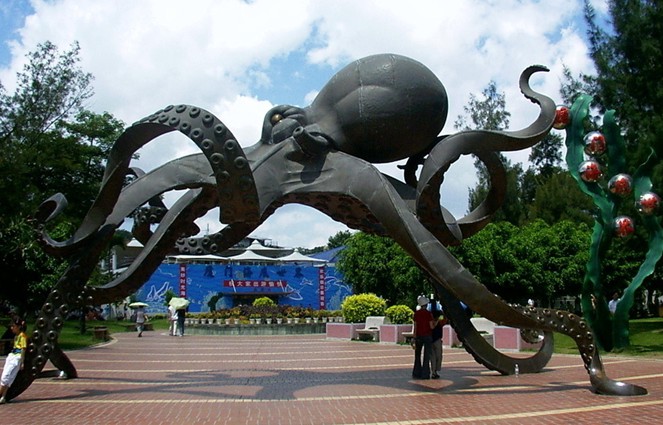 廈門海底世界占地17.5公頃,總建筑面積7500平方米。它是由新加坡華僑與鼓浪嶼風(fēng)景區(qū)建設(shè)開發(fā)公司合作興建的,總投資1000萬美元。這座花壇簇擁的海藍色水晶宮建筑,第一期工程先后建成了海洋館、企鵝和淡水魚館。其入口處在主體建筑外60米地方有一個設(shè)計獨特、別具一格、張牙舞爪的章魚雕,高6米、跨徑11.2米。它是廈門海底世界的標(biāo)志性建筑,也是游客們首先拍照留念的景觀。