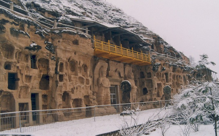 窟龕因崖面自然形態(tài)分為上下兩層,以回廊石階貫通,布局有制,層次分明。特別是165洞窟高達(dá)14米,深15.7米,寬21.7米,規(guī)模宏大,全國(guó)罕見(jiàn)。文物保存完整,內(nèi)容豐富,其歷史、藝術(shù)、科學(xué)、旅游價(jià)值很高。是世界石窟藝術(shù)的珍品,這里背山面水,自然風(fēng)景典雅秀麗。春天姹紫嫣紅,鳥(niǎo)語(yǔ)花香;夏日泉水叮咚,涼風(fēng)習(xí)習(xí);秋季霜葉爛漫,碩果累累;冬至瑞雪紛飛,幽靜而壯觀(guān),人文景觀(guān)獨(dú)特。石窟分上中下三層,其中以奚康生創(chuàng)建的一百六十五號(hào)窟為最大,它是以七佛為內(nèi)容的大型窟。七佛造像宏偉精湛,莊嚴(yán)肅穆,不失北魏造像的光彩和魅力。伴之七佛而雕造的彌勒菩薩、騎像菩薩、手持日月的阿修羅都是富有藝術(shù)感染力的成功作品。除此而外,還有240號(hào)窟的北周造像,顯示了敦樸厚重的風(fēng)度。北石窟寺以唐代窟最多,最有代表性的是建于武則天如意元年(公元692年)的32號(hào)窟??邇?nèi)的大小雕像面容豐腴,秀目含情,飄然欲動(dòng),姿態(tài)動(dòng)人,堪稱(chēng)盛唐藝術(shù)精品,唐代造像在藝術(shù)上達(dá)到了新的成就。窟內(nèi)還保存著隋、唐、宋、金、西夏、元等各代的題記150多則,是研究歷史、書(shū)法的珍品。題記確切記載了石窟的開(kāi)鑿年代,為研究歷代社會(huì)生活和發(fā)展變化,提供了很有價(jià)值的文字資料。這些綿亙千余年的雕刻藝術(shù),凝結(jié)著勞動(dòng)人民的智慧,是古代藝術(shù)匠師們辛勤勞動(dòng)的結(jié)晶。為我們留下了豐富的精神財(cái)富?!”笔咚乱运聹系目啐愖顬榧?,共編號(hào) 282個(gè),窟群開(kāi)鑿在高20米、寬 120余米的覆鐘山崖壁上,窟龕上下重疊多達(dá)3層。面向西,因周?chē)窖率|(zhì)屬早白堊紀(jì)黃砂巖,砂質(zhì)均勻,膠結(jié)性能較好。造像可分為圓雕、半圓雕和浮雕等幾種。以北魏和唐代的最為精美。原窟龕內(nèi)均有彩繪壁畫(huà)或圖案裝飾,現(xiàn)絕大多數(shù)已剝落無(wú)存。