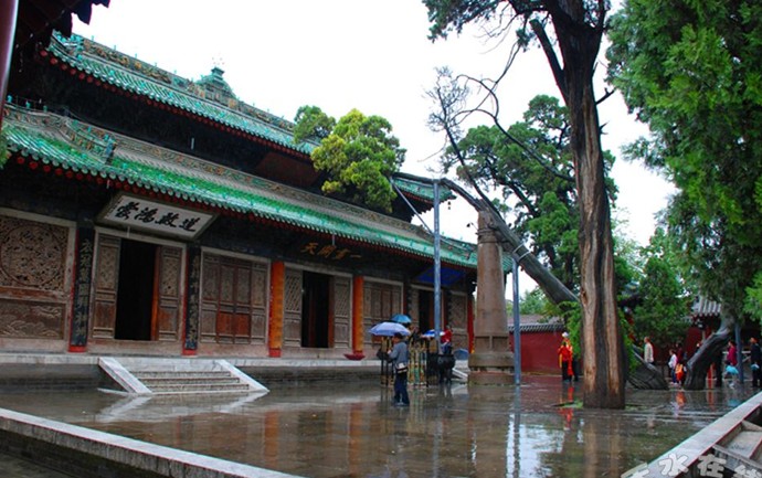 如今伏羲廟的前身。此廟從建成到元朝覆亡,雖然只有六十多年光景,可是 由于政局動蕩,各方均受牽連,文化、宗教、教育等諸業(yè)日趨蕭條;因之,到明代初期,天水"三皇"廟已傾倒坍塌,不成樣子了。直到明代中葉,版權(quán)所有山東聊城聊之旅國際旅行社有限公司,轉(zhuǎn)載必究!弘治三年(公元1490年),在秦州指揮"明威將軍"尹鳳的倡導(dǎo)組織下,才在原"三 皇"廟的基礎(chǔ)上,重新起造廟宇,始稱"伏羲廟",延續(xù)至今,已近五個世紀(jì)了。據(jù)記載,伏羲廟起初并不很大。自嘉靖三年(公元1524年)起,巡茶御史陳講,用了三年時間進(jìn)一步開拓修繕,為伏羲廟的規(guī)模和布局奠定了基礎(chǔ)。近五百年來,又先后歷經(jīng)明嘉靖十年(公元1531年),清順治十年(公元1653年)、乾隆五年(公元1740年)、嘉慶十一年 (公元1806年)、光緒十三年(公元1887年),屢次擴建、維修,才成如今這樣整肅宏偉、遠(yuǎn)近聞名的古建筑群。目前的伏羲廟,坐北向南,占地一萬余平方米?,F(xiàn)存建筑為兩門三進(jìn)。