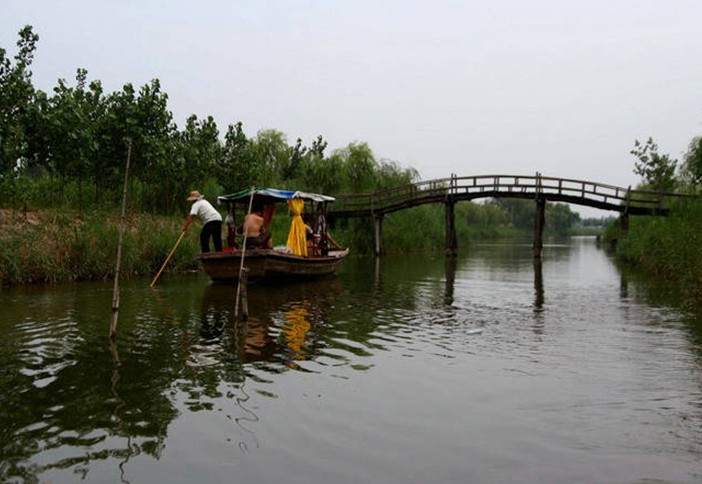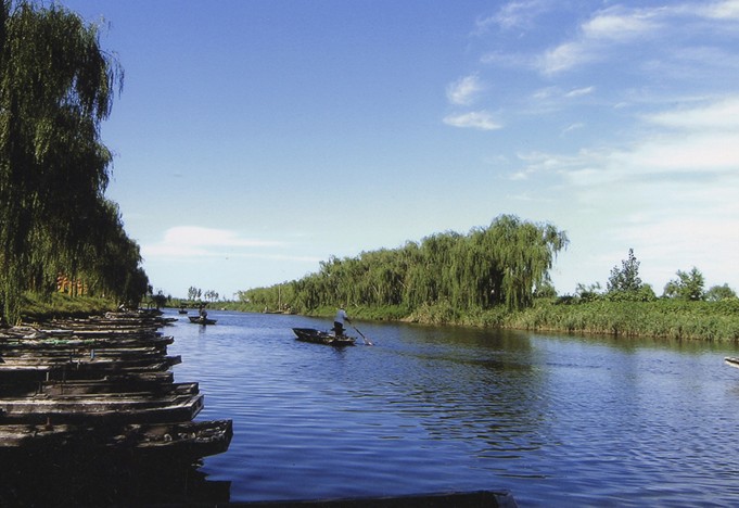 馬踏湖碧水瀅瀅,2100多條渠道交織成網(wǎng),四通八達。湖區(qū)27個自然村落,村村靠湖,家家連水,戶戶通船,門前搭起小橋,院后泊著小船,小橋流水人家,如詩如畫。因而,馬踏湖風景區(qū)又有“北國江南”水鄉(xiāng)之美稱。