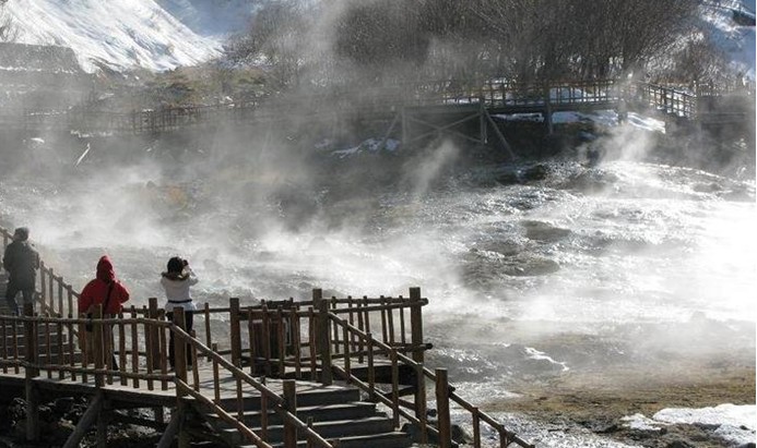 在長(zhǎng)白山黑風(fēng)口滾滾黑石下面有幾十處地?zé)?,大如碗口、小有指粗,這就是分布在1000平方米地面上的長(zhǎng)白山溫泉群。在冬天,周圍一片銀裝素裹、冰天雪地,而這里卻是熱氣騰騰、煙霧裊裊,實(shí)在是別有一番景致。長(zhǎng)白山溫泉屬于高熱溫泉,多數(shù)泉水溫度在60℃以上,最熱泉眼可達(dá)82℃,雖然供游客洗浴的溫泉都經(jīng)過了冷卻處理,卻依然足夠熱烈,這一點(diǎn),東北溫泉,從不含糊。