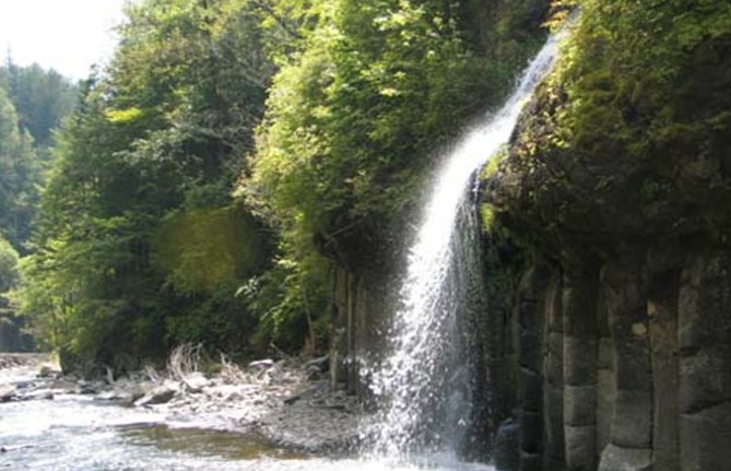 吊水壺瀑布景區(qū)距離三角龍灣15分鐘的車程,與金龍頂子山相依為伴。吊水壺瀑布是火山爆發(fā)后,河床受張力斷迭形成的瀑布,寬約10米,落差7米。更別致的是另有一處水流好似噴泉,自崖中間凌空噴下,象茶壺中的水從壺嘴中倒出來一樣,故當(dāng)?shù)厝朔Q其為“吊水壺”。吊水壺瀑布景致壯觀秀麗,流水清澈見底,冬天水不封冰,夏日冰涼刺骨。炎熱的盛夏時(shí)節(jié)前去,一定會看到水珠飛濺、霧氣蒙蒙的景象,一陣陣涼氣襲來,沁人心脾,可謂避暑度夏的最好去處了。