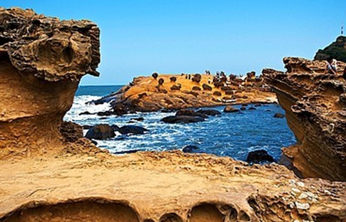 金山舊名“金包里”,濱海的美麗風(fēng)景為其特色。金山岬東側(cè)450公尺外,有兩座小島,稱為“燭臺(tái)雙嶼”,乃海底受蝕的珊瑚礁巖隆起后所形成。金山青年活動(dòng)中心:為救國團(tuán)所成立,每年吸引了廿萬人的人潮。