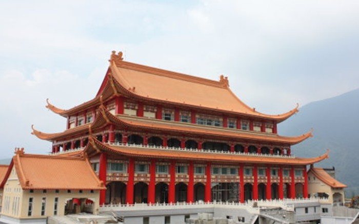 靈巖山寺坐南向北,進(jìn)山門沿曲路是三層立體停車場,停車后的建筑依次沿著中軸線為許愿亭、大齊堂、觀音殿。觀音殿兩側(cè)是東西寮房和總務(wù)、尊客堂。再往后是念佛堂、凈土講堂、關(guān)房等。寺院殿堂依山而建,金碧輝煌。念佛堂內(nèi)供奉西方三圣,可同時(shí)容400人參修。高聳入云的觀音殿,內(nèi)設(shè)華嚴(yán)殿、閱藏樓、藏經(jīng)閣等,耗資近億臺幣,工程浩大,莊嚴(yán)無比。