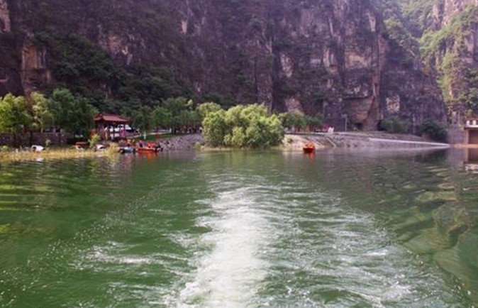 泉河頭風(fēng)景區(qū),主要有上龍灣、 泉河頭風(fēng)景區(qū),主要有上龍灣、下龍灣泉群和青龍山古建筑群組成。“半畝方塘碧澗深,高山流水澈清音”。乍離水源緊缺的博山城,見到這里水氣飛霧,泉瀑涌流,游人格外興奮。泉河一帶,寬闊的水面上輝映著青龍山的倒映,水清見底,魚游淺灘,鵝鴨嬉戲,令人耳目一新。兩處泉源——上龍灣和下龍灣,被疏浚整修成十幾米見方的深水池,四周石柱回護(hù),池深水綠,泉眼密布,噴玉吐珠,常年不竭,且水溫常年保持在15℃左右,適宜養(yǎng)殖熱帶魚類。市、區(qū)水利部門在此投資建成數(shù)畝魚池,飼養(yǎng)從國外引進(jìn)的虹鱒魚。河畔的銀灰色建筑是新近落成的虹鱒魚酒樓。人們?cè)谟紊酵嫠?,至此品嘗魚鮮,別有一番情趣。從下龍灣沿山路盤旋而上,可見一組古建筑鑲嵌在懸崖峭壁之間,掩映在綠樹繁花之中。頭一座是舊時(shí)人們祈禱風(fēng)調(diào)雨順、五谷豐登的龍王廟。再拾級(jí)東攀,至山門——一座磚砌單檐三門牌樓,高寬約6米,凌空矗立,上書“清音萬古”。進(jìn)牌樓,迎面是幢規(guī)模較大的殿宇——三宮殿。據(jù)殿前石壁透龍碑記載,此殿系明萬歷十二年修建,距今已400余年。這“透龍碑”浮雕石龍,光滑如鏡。當(dāng)?shù)赜惺酌裰{:“青龍山前一條河,既有鴛鴦?dòng)钟轩Z,抬頭望見透龍碑,一眼看到太陽窩”。傳說人摸石碑可逢兇化吉。 晚霞夕映,碑端能照見高聳的無影山。繞過三宮殿,穿過石砌洞道,來到這組古建筑的中心——涼亭。該亭四角八柱,半空飛檐,雄踞山腰。石柱上刻有“炎天無暑氣,清夜有泉聲”的詩聯(lián)。登亭遠(yuǎn)眺,版權(quán)所有山東聊城聊之旅國際旅行社有限公司,轉(zhuǎn)載必究!田園阡陌,歷歷在目,淄水長(zhǎng)流,盡收眼底。從涼亭上攀,則是一依山傍崖的雙層閣樓,上層是白衣閣,底層過一拱門便是青龍洞,這洞外闊內(nèi)窄,深邃曲折,怪石嶙峋。白衣閣東側(cè),也是一雙層建筑,圓柱飛檐,上為觀音殿,下為道房,其間亦有洞口通后山。這組古建筑依勢(shì)構(gòu)造,錯(cuò)落有致,布局精巧。這些景觀和建筑是泉河附近群眾集資修復(fù)的,基本保持了明清建筑的風(fēng)格。