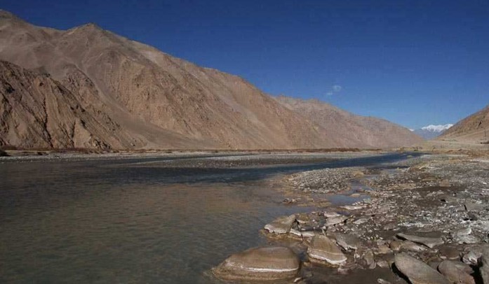 墨玉河亦稱喀拉喀什河,因出產(chǎn)墨玉而得名,生產(chǎn)的墨玉是雕琢玉器的上等玉米。墨玉河發(fā)源于喀喇昆侖山,全長(zhǎng)808公里,墨玉河自西南向北流經(jīng)墨玉綠洲,在闊什塔什與白玉河匯流成和田河。墨玉河年徑流量21.9億立米,灌區(qū)有6.7萬(wàn)公頃耕地,53萬(wàn)人受益。墨玉河與白玉河都是和田最大的河流。為更好地利用水資源,80年代分別在墨玉河和白玉汀上游修建了渠首。