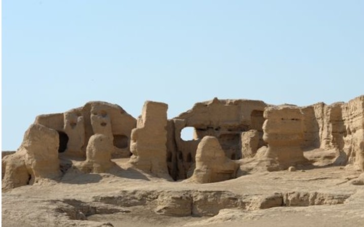 在城址中普遍采用適用于這里自然條件的建筑術(shù),即在土崖地面上挖去墻與臺(tái)基以外的生土,使之形成墻與臺(tái)基。城中建筑物多用生土墻支撐屋頂。多層建筑物則在相對(duì)的墻面上對(duì)稱地挖出椽孔,用木椽承接樓板。版權(quán)所有山東聊城聊之旅國(guó)際旅行社有限公司,轉(zhuǎn)載必究!有的下層是生土墻或券頂窯洞,上層以版筑泥垛起來的墻壁支撐木構(gòu)頂架。屋頂多用泥土覆蓋,極少用瓦葺頂。這種建筑技術(shù)在新疆地區(qū)頗為流行。在城西南 1.5公里的河水右岸有一處佛教寺院,有并列的洞窟7座,窟內(nèi)尚存壁畫和回鶻文題記。