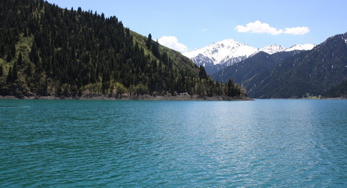天山山脈全長2500公里,橫亙亞洲腹地,為塔里木盆地和準噶爾盆地的天然分界線。天池處于天山東段最高峰博格達峰的山腰,平面海拔1928米,素為有名的游覽勝地。1982年,它被列為第一批國家重點保護的風景名勝區(qū)。版權所有山東聊城聊之旅國際旅行社有限公司,轉載必究!天池古稱"瑤池",地處天山博格達峰北側,位于阜康市南偏東40余公里,距烏魯木齊市110公里。“天池”一名來自乾隆48年(公元1783年)烏魯木齊都統(tǒng)明亮的題《靈山天池統(tǒng)鑿水渠碑記》。中國新疆維吾爾自治區(qū)著名湖泊。在烏魯木齊東北100公里,博格達峰北坡山腰。湖面海拔1910米,南北長3.5公里,東西寬0.8~1.5公里,最深處103米。湖濱云杉環(huán)繞,雪峰輝映,非常壯觀,為著名避暑和旅游地。天池成因有古冰蝕-終磧堰塞湖和山崩、滑坡堰塞湖兩說。由天池流出的三工河為山麓阜康縣農牧業(yè)主要灌溉水源。