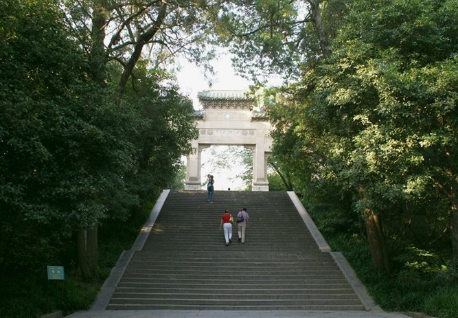 明清兩代,那里為規(guī)模宏大的東南名剎靈谷寺,后毀于戰(zhàn)火。民國時(shí)期在這里建陣亡將士公墓,新增正門、牌坊、松風(fēng)閣、靈谷塔等,至今保存完好?,F(xiàn)公園內(nèi)的靈谷寺、原為同治六年(1867年)建的龍神廟,規(guī)模雖小,卻藏有玄奘法師頂骨,極為珍貴。古靈谷寺保留下來的還有供奉無量壽佛的無量殿,因不施寸木也無梁椽,俗稱無梁殿,民國時(shí)期改作祭堂,現(xiàn)辟為辛亥名人蠟像館。靈谷深松處的譚延闿墓,墓前祭臺為北京圓明園的原物。