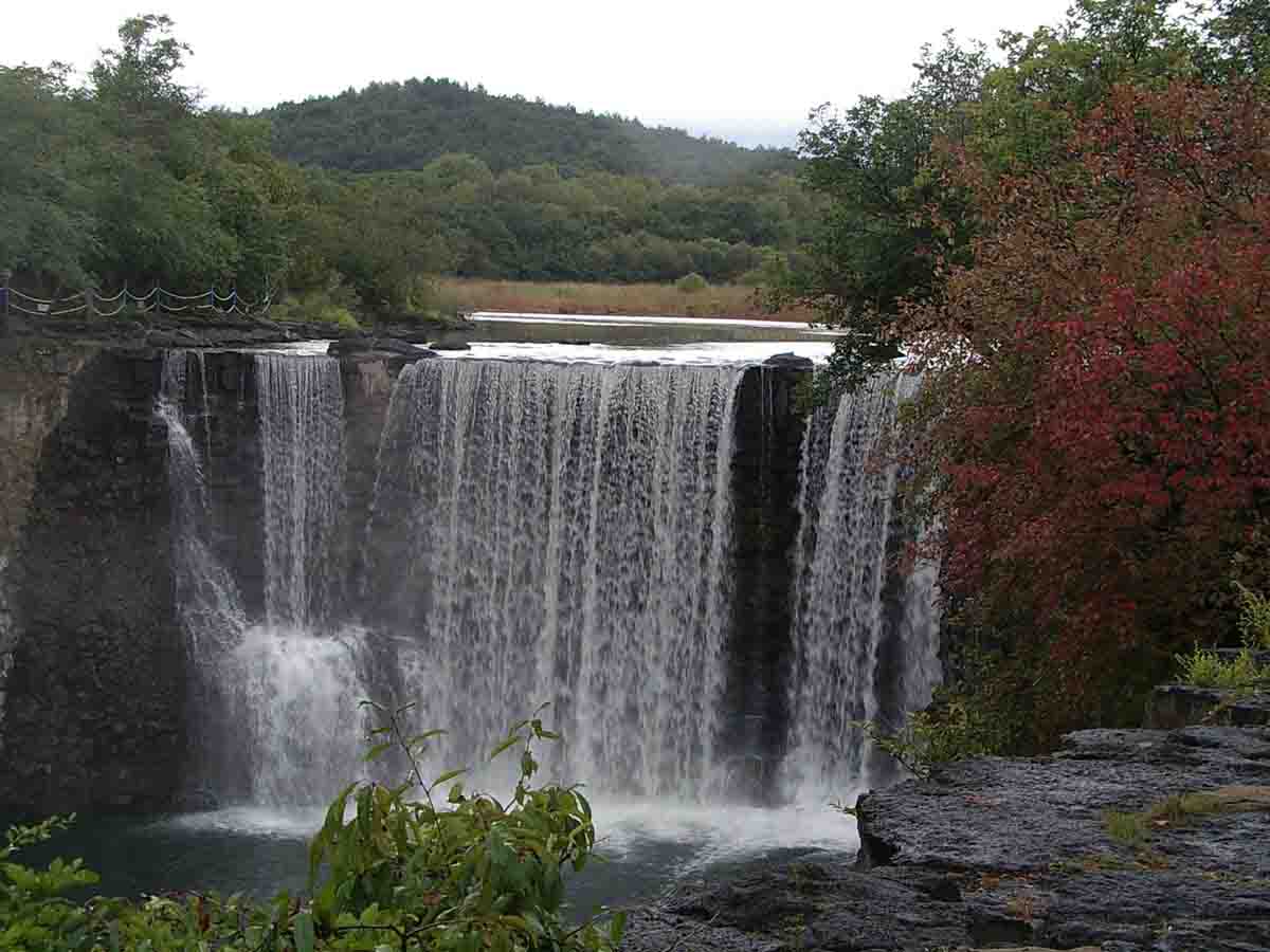 冬季枯水期,瀑布不見(jiàn)了,卻可以觀(guān)賞到另一番景致。在熔巖床上,游人可發(fā)現(xiàn)許多被常年流水沖擊的熔巖塊因磨蝕而形成的大小深淺不等的溶洞。這些溶洞,猶如人工鑿琢般光滑圓潤(rùn),十分別致。