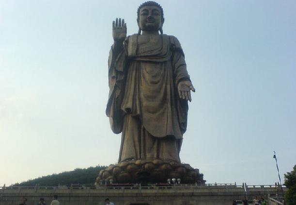 矗立在小靈山南麓的靈山大佛,包括蓮花座在內(nèi)通高為八十八米,相當(dāng)于一幢三十馀層樓房的高度,比“山是一尊佛,佛是一座山”的四川樂(lè)山大佛還要高出十七米,是迄今為止我國(guó)最高的巨型佛像。如果加上三層座基,總高度達(dá)一百零一點(diǎn)五米。