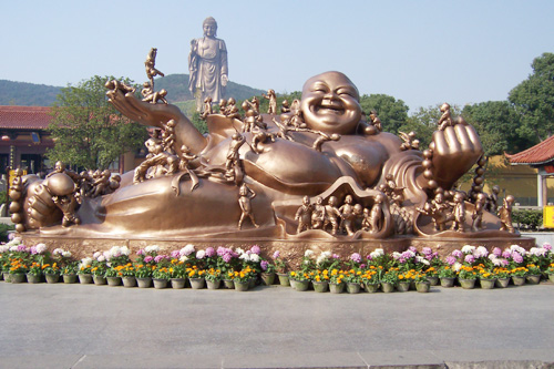 從杏壇廣場(chǎng)往上,攀218級(jí)登云道,看六角古井,觀七級(jí)浮雕,于大佛基座游覽靈山佛教文化博覽館。博覽館以神州五方五佛、中華四大佛山、藏傳、南傳、漢傳三大佛教語(yǔ)系以及佛教文化藝術(shù)為展覽主線,充分展示博大精深的佛教文化。自博覽館乘電梯而上,游客還可參與“平安抱佛腳”活動(dòng),登高望遠(yuǎn),憑欄臨風(fēng),近可觀景區(qū)全景,遠(yuǎn)可觀太湖湖光山色。從大佛足部步行而下,可參觀靈山萬(wàn)佛殿。靈山萬(wàn)佛殿供奉著近萬(wàn)尊靈山大佛之真身小佛像,供游人瞻拜迎請(qǐng)。2000年靈山景區(qū)新增兩處精彩景點(diǎn)。大型青銅浮雕“百子戲彌勒”喜慶吉祥,深受游客喜愛(ài)。位于大佛腳下二層的靈山隨喜堂是靈山的又一處綜合展示佛教文化的神圣殿堂,將令您嘆為觀止,并有品種多樣的佛教工藝禮品給您選購(gòu)。