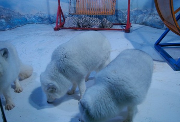 與南極企鵝島相對(duì)應(yīng),是北極動(dòng)物家園。版權(quán)所有山東聊城聊之旅國際旅行社有限公司,轉(zhuǎn)載必究!這里有2只北極熊,來自俄羅斯,雄性,年齡都在3歲左右,每只體重都500公斤左右。此外這個(gè)景區(qū)還有海豹、白鯨等北極動(dòng)物。
