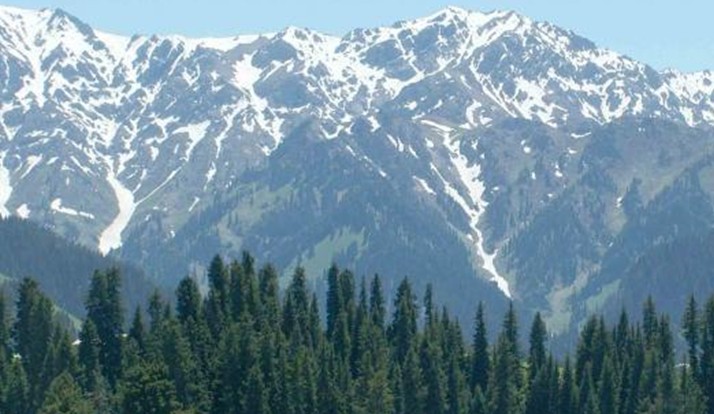 果子溝全長28公里,沿著烏─伊公路的大致走向,就是新疆古絲綢之路的北道。松樹頭,是果子溝的絕頂之處,北下直達賽里木湖畔,南下直入果子溝峽谷。賽里木湖,亦稱三臺海子,與果子溝唇齒相依,亦為新疆名勝之一。由松樹頭南下二臺林場,山路盤旋崎嶇,一落幽谷,是果子溝的險峻之處。落谷傍山,有一高山瀑布凌 空奔瀉而下,狀如白練懸空,壯觀異常。