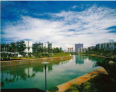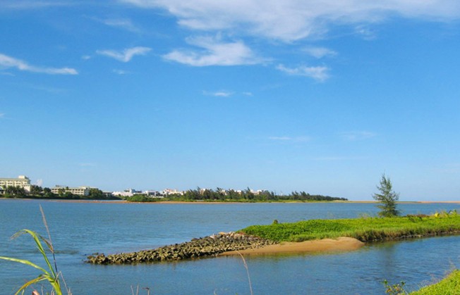 這里風(fēng)光更為迷人。集三河(萬(wàn)泉河、龍滾河、九曲江)、三島(東嶼島、沙坡島、鴛鴦島)、兩港(博港、潭門港)、一石(砥柱中流的圣公石)等風(fēng)景精華于一地,兩道天然沙堤猶如巨臂總攬一懷秀色。出??诩扔泻K⑸碁?、紅礁、林帶,又有明媚陽(yáng)光、新鮮空氣、清柔流泉,是目前世界河流出海口自然風(fēng)光保護(hù)最好的地區(qū)之一。