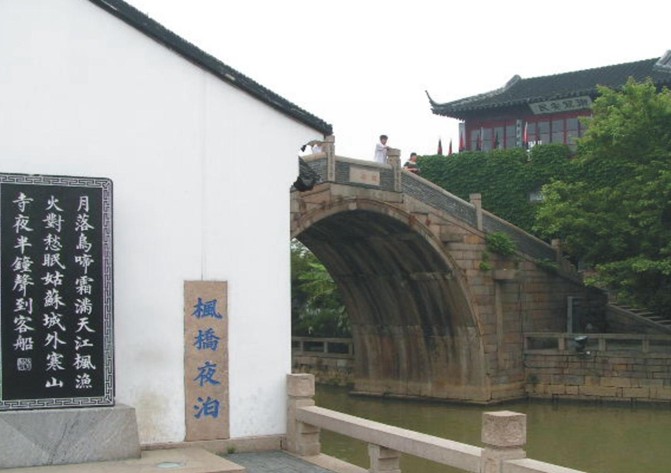 楓橋,在寒山寺北,距山門不過百步之遙,猶如一彎新月橫跨在楓江之上。楓江,又稱楓橋塘、楓里星河,南接胥江、越來溪,是蘇州古城和太湖的另一條北上水道。南宋范成大《吳郡志》曰“楓橋,版權(quán)所有山東聊城聊之旅國際旅行社有限公司,轉(zhuǎn)載必究!在閶門外九里道傍,自古有名,南北客經(jīng)由,末有不憩此橋而題詠者。”唐代詩人張繼的《楓橋夜泊》就是其中膾炙人口的名篇。張祜的《楓橋》(一作杜牧《懷吳中馮秀才》)也是廣為傳誦的佳作,詩云:
