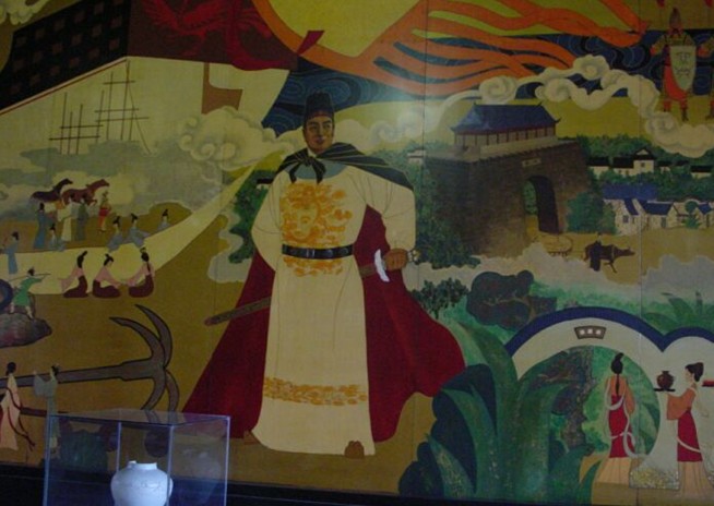 黑色方正的大理石底座上刻著:鄭和(1371-1435)幾個金燦燦的大字。鄭和炯炯的目光中包含著愛國主義激情和民族自豪感。版權(quán)所有山東聊城聊之旅國際旅行社有限公司,轉(zhuǎn)載必究!他的出使,是和平之舉,完成著傳播和平與友好使命。座像背后與左右兩側(cè)墻面上三幅巨型磨漆壁畫《鵬起瀏江》,面積達八十平方米,它不僅再現(xiàn)了當(dāng)年鄭和奉召首次從瀏河下西洋,訪問東南亞、東非各國出洋時的壯觀場面,更具有獨特的藝術(shù)效果--三幅壁畫金碧輝煌,氣勢磅礴,畫面線條流快明暢,人物栩栩如生,富有鮮明濃郁的民族風(fēng)格。鄭和船隊中十幾艘寶船“云帆高張、晝夜星馳”,無論從大廳的哪個角度看,都給人以那船是迎面駛來的感覺。