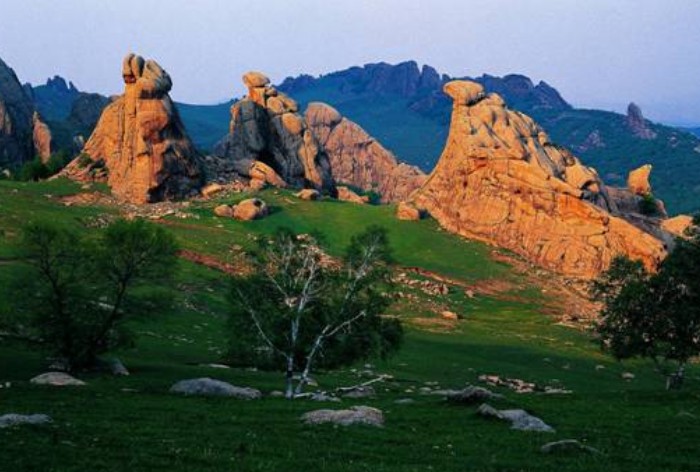 第二天:阿斯哈圖花崗巖石林----(100公里2小時) 黃崗梁冰川、森林風(fēng)光(午餐)----沙地云杉林----(沿途貢格爾草原風(fēng)光,80公里1小時)達里湖----熱水(洗溫泉、宿)