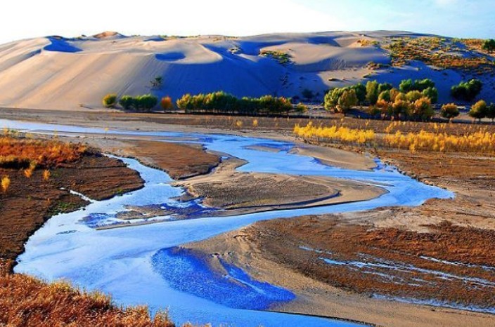 勃隆克沙漠是觀賞自然奇景和體驗蒙古族風情的好去處。這里有金色的沙山、碧綠的湖水、如茵的草原、奇異的怪石。種種看似奇異的組合就這樣完美地融在一處,讓人如在夢中一般。