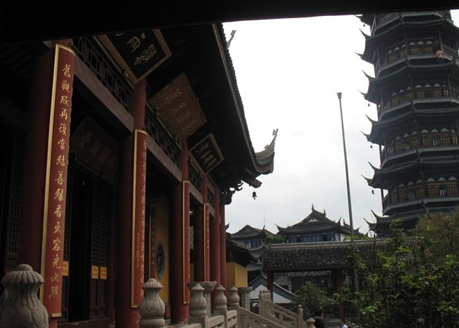 南禪寺有一座七級(jí)八面,高43.3米的古塔。傳說(shuō)是為了制服水患才把塔立在羊腰灣與運(yùn)河的交會(huì)處。 據(jù)《南禪寺記》記載,在北宋雍熙年間(984-988),有僧持缽而來(lái),走進(jìn)廟中,忽然不見了蹤影,后來(lái)發(fā)現(xiàn)寺壁上有該僧的影子,人們信以為佛,建造佛塔,并到蘇北泗州接來(lái)了三尊佛像。明代進(jìn)士無(wú)錫人張思安在《南禪寺重修塔碑記》中說(shuō):“院之西有溪,曰‘梁溪’,溪之脈與惠山第二泉通。父老相傳云:昔有巨蛟蜿蜒其中,每天地晦暝,輒興風(fēng)雨,噴腥濤,居民震怖,商賈懷憂。雍熙中,有異僧駐錫于茲,諭于眾曰:蒼龍?jiān)诙?,宜建浮屠(寶塔)以?zhèn)之,則蛟自潛,版權(quán)所有山東聊城聊之旅國(guó)際旅行社有限公司,轉(zhuǎn)載必究!民安業(yè)矣。”這些傳說(shuō)使南禪寺名聲大振。到了北宋崇寧三年(1104),徽宗趙佶賜塔名為“妙光塔”。妙光塔歷經(jīng)元、明、清多次劫難,現(xiàn)存建筑都是明正統(tǒng)年間所建。1925年,榮宗敬、榮德生、唐申伯等出資做了修復(fù)。1930年,曾在這里設(shè)游民習(xí)藝所。1980年,人民政府撥專款予以全面整修。1983年被列為市級(jí)文物保護(hù)單位。1993年,妙光塔按原樣修葺一新,重新對(duì)外開放。妙光塔系樓閣式磚塔,八角七層,總高43.3米,是“無(wú)錫八景”之一,睛日黑塔之影可以落到數(shù)里外的一座橋下,故名“塔影橋”。歷史上還有許多奇聞異說(shuō),最神奇的是相傳發(fā)出過(guò)五顏六色直沖云霄的妙光,近已有科學(xué)論證,這是雷電作怪。20世紀(jì)80年代始,南禪寺建成文化商城,規(guī)模不斷擴(kuò)大,已建成商業(yè)用房9.5萬(wàn)平方米,規(guī)劃建設(shè)12萬(wàn)平方米,似無(wú)錫的“城隍廟”,南禪寺已成為人們游玩、購(gòu)物的好去處。其中妙光街被無(wú)錫市定為旅游一條街。