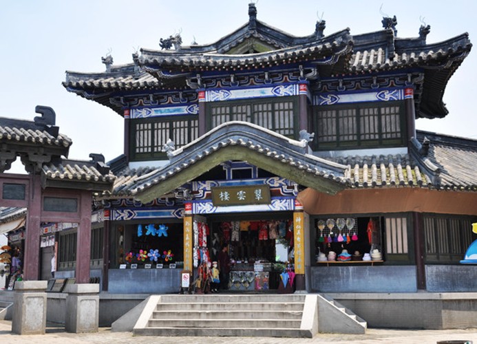 走進城門后下臺階后,進入內(nèi)門,左邊有一處宅第,在〈〈水滸傳〉〉中武松為報兄仇,殺潘金蓮和西門慶被發(fā)配至孟州,多虧管營大人金眼彪施恩的厚待,義氣相投,結(jié)拜為兄弟,后又幫公義奪快活林,醉打蔣門神,這里就是當(dāng)初劇組拍攝施恩家外院的地方。右前方這一樓閣便是翠云樓,梁山好漢為救玉麒麟盧俊義,派鼓上蚤時遷在元宵節(jié)火燒翠云樓,眾好漢大鬧北京需,救出這個后來坐了梁山第二把交椅的盧俊義。這翠云樓其實是座酒樓,在當(dāng)時是河北第一大酒樓,全樓三檐滴水,有上百個閣子,規(guī)模宏大,是大名府的標志性建筑。