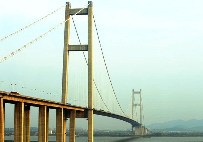 位于江蘇省鎮(zhèn)江、揚(yáng)州兩市西側(cè),為目前我國(guó)第一大跨徑的組合型橋梁,其建設(shè)過(guò)程中攻克多項(xiàng)世界性技術(shù)難題,當(dāng)時(shí)是國(guó)內(nèi)工程規(guī)模最大、建設(shè)標(biāo)準(zhǔn)最高、投資最大、技術(shù)最復(fù)雜、技術(shù)含量最高的現(xiàn)代化特大型橋梁工程,是我國(guó)第一座剛?cè)嵯酀?jì)的組合型橋梁。