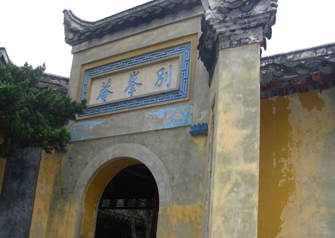 鄭板橋讀書(shū)處在江蘇鎮(zhèn)江的別峰庵內(nèi),是清雍正年間揚(yáng)州八怪之一鄭板橋讀書(shū)之所在。別峰庵呈四合院形制,一方花壇,數(shù)株桂花修竹,環(huán)境幽雅宜人,門(mén)上保留著鄭氏當(dāng)年手書(shū)對(duì)聯(lián)"室雅何須大,花香不在多",對(duì)讀書(shū)處的鐘愛(ài)溢于言表?!∴嵃鍢蛟?shī)、書(shū)、畫(huà)“三絕”,筆下之竹尤為世人稱道,焦山隨處可見(jiàn)形態(tài)各異的修竹,觀察入微的鄭板橋自是得心應(yīng)手。有詩(shī)為證: 靜室焦山十五家,家家有竹有籬笆?!‘?huà)來(lái)出紙飛騰上,欲向天邊掃暮霞?!∴嵤夏珜氃诖颂幜宅槤M目,“難得糊涂”、“吃虧是福”之類(lèi)警句拓片更是令南來(lái)北往的游人心向往之。