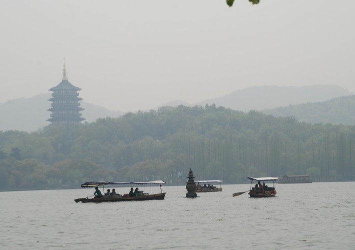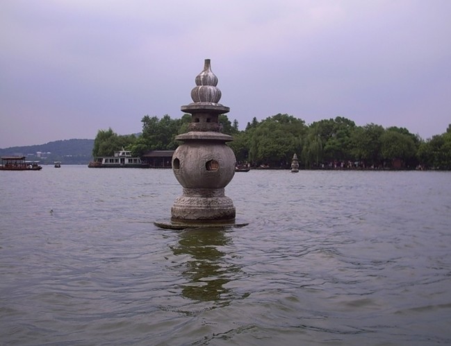 據(jù)說,三潭印月的三座石塔,就是香爐的三只腳。又因?yàn)橄銧t里的一爐香灰倒翻在西湖里,從此,西湖泥都成了香灰泥。