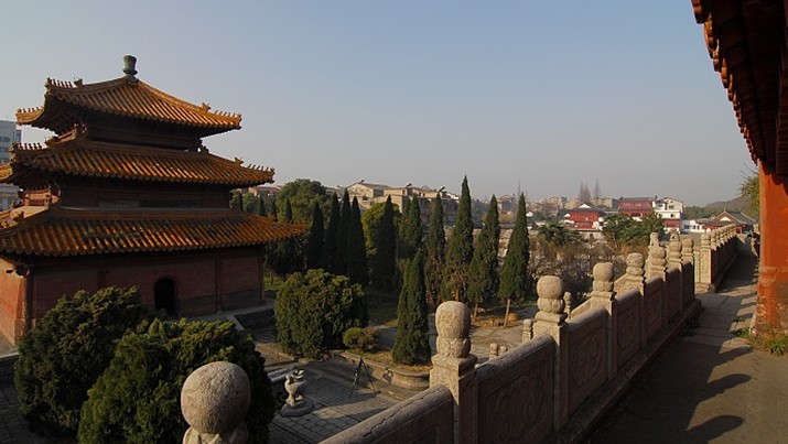 玄妙觀位于荊北路中段,其名體現(xiàn)了道家玄學思想的精髓。該觀始建于唐代,后毀于兵燹,現(xiàn)存建筑為明萬歷十二年(公元1584年)重建,主建筑玉皇閣三重飛檐,狀似塔形,屋頂有一青銅蓮花座,猶如盛開的金蓮,與屋頂閃爍的琉璃瓦融為一體,分外耀眼。觀后6米高臺之上建有三天門和玄武閣,均為重檐歇山頂,是為明清重建之佐證。版權所有山東聊城聊之旅國際旅行社有限公司,轉(zhuǎn)載必究!玉皇閣右側方立有一高大的石碑“九老仙都宮記”碑。此碑立于元順帝至正三年(公元1334年),是江漢平原所能見到的最早的碑刻,碑文記述當時的玄妙觀主持道人唐洞云被元順帝封為八仙后的之第九仙。碑文為元代著名學士歐陽元撰寫、元代書法大家危素手書,其史料及藝術值均彌足珍貴。