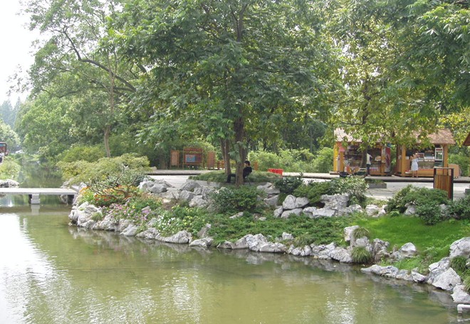 花港乃是得用原有零星水稻田和水塘疏挖而成,大部分是人工挖掘的,它是溝通小南湖和西里湖的游覽河道,把整個花港觀魚公園環(huán)抱在水中央。