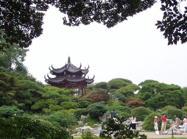 牡丹園最高處是重檐八角攢尖頂?shù)哪档ね?,匾額由當(dāng)代文學(xué)家茅盾題寫。東南側(cè)坡有 一平臺,平臺上有用黑白卵石仿梅樹姿態(tài)鋪砌而成的圖案,平臺旁植古梅一株。取宋代詩人林和靖<<山園小梅 >>詩中“疏影橫斜水清淺,暗香浮動月黃昏”的意境, 牡丹亭畔小徑一側(cè),植古梅一株,梅樹下,以黑、白卵石砌成此梅姿影圖案于路面,現(xiàn)代大儒馬一浮題筆稱之為“梅影坡”?!∧档ぴa(chǎn)我國西北部,秦嶺和陜北山地多野生。在我國栽培歷史悠久,南北朝時已聲成為觀賞植物。唐時盛栽于長安,宋時稱洛陽為牡丹為天下第一,故牡丹又名洛陽花。《群芳譜》中記載牡丹有180多種,有一千五百多年的載培史。 牡丹是花中之王,有“國色天香”之稱,朵大色艷,奇麗無比,有紅、黃、白、粉紫、墨、綠、藍(lán)等色?;ǘ嘀匕?,姿豐典雅,花香襲人。我國人民把它作為富麗繁華之象征,稱之為“富貴花”、“百兩金”。早在唐代都城長安栽植和觀賞牡丹之況極盛,白居易詩曰“花開花落二十日,一城之人皆若狂”。