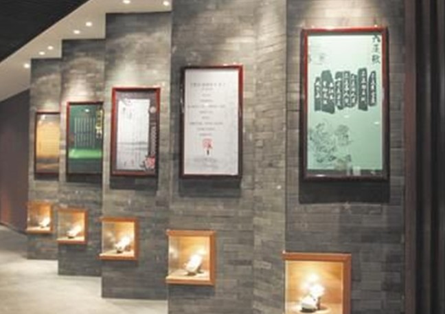 有的展廳設(shè)開放陳列區(qū)。茶萃廳陳列了綠茶、紅茶、烏龍茶、白茶、黃茶、黑茶六大茶類及再加工茶等共三百余個茶樣實物,被分門別類地安放在圓柱狀茶樹形臺面上,同時配有相應(yīng)按鈕。只要觀眾戴上耳機,點擊標(biāo)本旁的按鈕,就會有一個娓娓動聽的聲音介紹相關(guān)的茶葉知識。同時在開放區(qū)還陳列著各種緊壓茶,有金瓜茶、筍殼茶、七子餅茶、方磚茶、茯磚茶等等,小的直徑不過一、二厘米,大的直徑竟超過一米。只要觀眾有興趣,就可以用手去觸摸,甚至可以用嗅覺去感受它的香味。