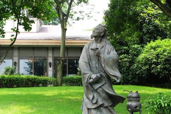 茶圣陸羽的仙風(fēng)道骨讓人駐足不前,遠眺群山的陸羽,激發(fā)了人們對先賢的緬懷。茶博陸羽像為青銅制,高約2.5米,并配有低矮的茶桌,置茶爐、茶杯等品茗用具于上,陸羽則站立于旁,衣袂飄然,左手持一茶碗,右手持一茶書,回味著唇齒之間的茶香余韻,神態(tài)自若,氣勢生動。
