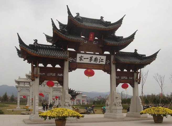 “江南第一家”又稱鄭義門,是飲譽中外的華夏古代家族文化的重要遺址。居住于此的鄭氏家族,以孝義治家名冠天下。自南宋建炎年間開始,歷經(jīng)宋、元、明三朝十五世同居共食達三百六十余年,鼎盛時三千多人同吃一“鍋”飯。其孝義家風(fēng)多次受到朝廷旌表,洪武十八年(公元1385 年),明太祖朱元璋親賜“江南第一家”。景區(qū)內(nèi)保存有鄭氏宗祠、昌七公祠、建文井、老佛社等一批重要歷史文物。鄭氏家祠始建于元初,結(jié)構(gòu)宏敞,風(fēng)格古樸。宗祠內(nèi)高懸眾多歷代名人題匾和聯(lián)語,具有很高的藝術(shù)價值和文物價值。前廳及拜廳天井內(nèi)有尊為明初文臣之首宋濂手植的古柏,枝干虬勁,上薄云天。景區(qū)內(nèi)尚有孝感泉、九世同居碑亭、東明書院、“十橋九閘”和玄麓元代摩崖石刻等古跡遺址二十余處,內(nèi)容豐富,蔚成群觀。而入口區(qū)象征九世同居的九座牌坊,其數(shù)量之多、種類之全和含義之豐堪稱全國之最。