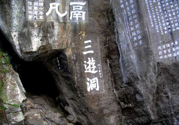 “夷陵峽口明月夜,此處逢君是偶然。一別五年方見面,相攜三宿未回船。往事渺茫都似夢(mèng),舊游零落半歸泉。未死會(huì)應(yīng)相見在,不知何地復(fù)何年”。最后由白居易作《三游洞序》題于石壁之上說:“以吾三人始游,故曰為三游洞。”此序以紀(jì)其事,三游洞因此而得名,因有后來者,故稱為“前三游”。1059年冬,宋蘇洵、蘇軾、蘇轍父子三人出川赴京,途經(jīng)夷陵,亦乘興游賞此洞,亦各賦詩一首題寫于洞中,人稱“后三游”。蘇轍詩云:“洞前危徑不 容足,洞中明曠坐百人。三人一去無復(fù)見,至今冠蓋長(zhǎng)滿門”??梢娙味粗了未殉蔀槲娜搜攀?、達(dá)官貴人游覽、懷古的地方,以至摩肩接踵,洞門壅塞。