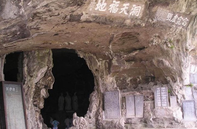 因?yàn)槿味刺幱诔鋈胨拇ǖ闹坶鶃硪琅?,歷來的文人大都來此一游,留下許多詩文,鐫刻在石壁之上。至今,洞內(nèi)外尚存有歐陽修題記等各種壁刻和碑文四十余件。