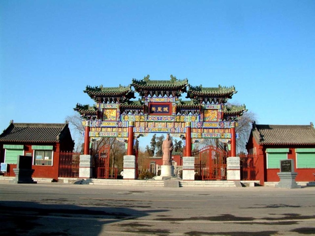 文王廟建在羑里城遺址之上,座北朝南,現(xiàn)存建筑系明嘉靖二十一年(1542年)重建。
