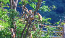 太行獼猴,在進(jìn)化系統(tǒng)上屬靈長目猴科,為國家二級保護(hù)動(dòng)物。由于太行獼猴是生活在氣候較冷,緯度最北的獼猴群,周圍環(huán)境山峰陡峭。因此獼猴群體大、體壯,毛長尾短,善于攀緣,喜歡跳躍,行動(dòng)敏捷,形體俊美,模仿性強(qiáng),為獼猴中最進(jìn)化的一種,具有很高的科研價(jià)值、經(jīng)濟(jì)價(jià)值和觀賞價(jià)值,其觀賞性、趣味性、參與性均屬當(dāng)今世界最受歡迎的旅游項(xiàng)目。太行獼猴終年棲息于針闊葉混交林、灌木林及懸崖峭壁之間,喜群居生活,由猴王率領(lǐng)猴群,并配備護(hù)衛(wèi)猴、哨猴,通常每群百只左右,白天活動(dòng)覓食,夜間宿于懸崖峭壁之上,以植物性食物為主,屬雜食性動(dòng)物。