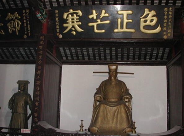 元代詩人王惲賦詩贊日:“拂拭殘碑覽德輝,千年包范見留題。驚烏繞匝中庭柏,猶畏霜威不敢棲。”頃揚(yáng)包公和范件淹的盛德和威名光耀千古,把貪宮污吏比作可惡的烏鴉,即使千百年后,見其碑猶如見二公其人,仍諒懼萬分,不敢近前逗留。可見“包青天”名不虛傳;東西展殿則以圖文并茂的形式,展示包公的傳說軼聞,歷史故事,特別是東殿的群組蠟像《鍘美案》與真人大小一樣,色彩鮮明、形神俱備、毫發(fā)俱現(xiàn)、栩栩 如生,倍受中外游客贊揚(yáng)。