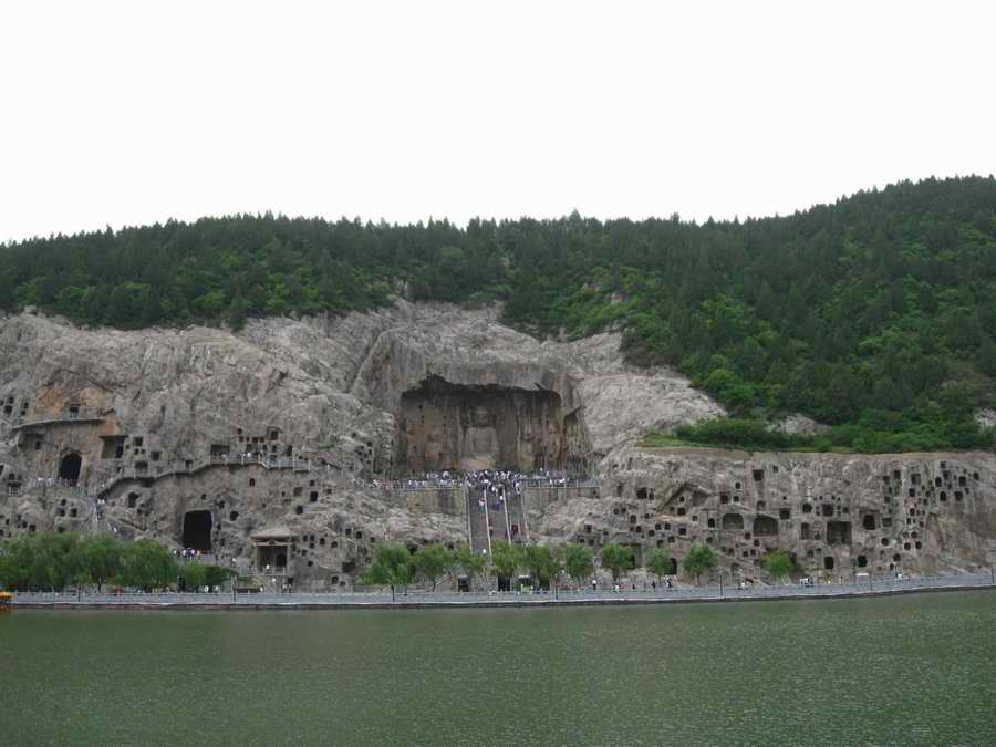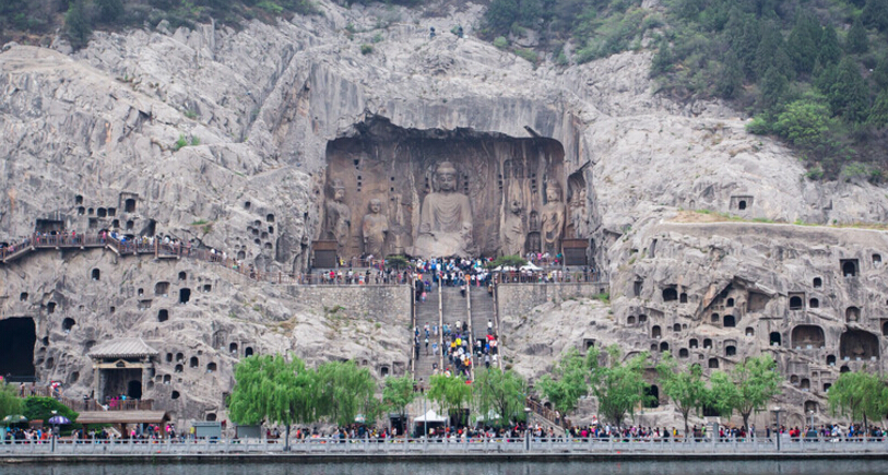 龍門石窟是中國三大石窟之一(另外兩大石窟為:山西云岡石窟、甘肅敦煌莫高窟),位于洛陽市城南6公里的伊闕峽谷,這里香山和龍門山兩山對峙,伊河水從中穿流而過,古稱“伊闕隋煬帝遷都洛陽后,將把皇宮的正門正對伊闕,從此,伊闕便被人們習慣的稱為龍門。龍門自古為險要關(guān)隘,交通要沖,向為兵家必爭之地。因山清水秀,環(huán)境清幽,氣候宜人,被列入洛陽八大景之冠,唐代大詩人白居易曾說:“洛都四郊,山水之勝,龍門首焉”,此處素為文人墨客觀游勝地;又因石質(zhì)優(yōu)良,宜于雕刻,故而古人擇此而建石窟。這里青山綠水、萬象生輝,伊河兩岸東西山崖壁上的窟龕星羅棋布、密如蜂房。