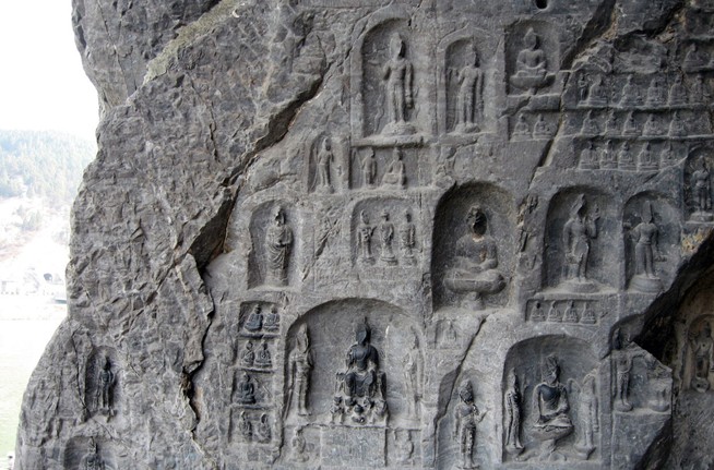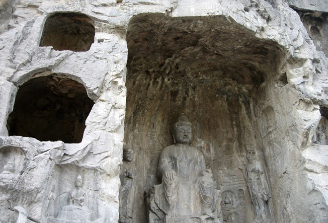 門石窟是中國石刻藝術(shù)寶庫之一,位于河南省洛陽市南郊伊河兩岸的龍門山與香山上。開鑿于北魏孝文帝遷都洛陽之際,之后歷經(jīng)東魏、西魏、北齊、隋、唐、五代的營造,南北長達1公里,至今存有窟龕2345個,造像10萬余尊,碑刻題記2800余品。其中“龍門二十品”是書法魏碑精華,褚遂良所書的“伊闕佛龕之碑”則是初唐楷書藝術(shù)的典范。龍門石窟延續(xù)時間長,跨越朝代多,以大量的實物形象和文字資料從不同側(cè)面反映了中國古代政治、經(jīng)濟、宗教、文化等許多領(lǐng)域的發(fā)展變化,對中國石窟藝術(shù)的創(chuàng)新與發(fā)展做出了重大貢獻。2000年入選世界文化遺產(chǎn)。