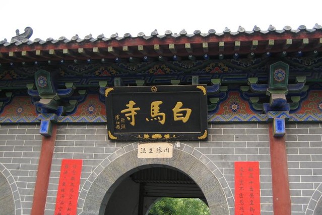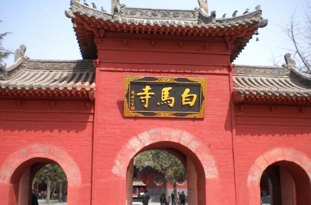 相傳東漢明帝曾經(jīng)夢(mèng)見(jiàn)一個(gè)從西方來(lái)的高大金神,第二天便召集大臣議論。有人認(rèn)為,金神即是西方的佛。明帝認(rèn)為有道理,于是派使者去西域求佛。這些使者在大月氏遇見(jiàn)了邇?nèi)~摩騰和竺法蘭兩位天竺高僧,于是迎還洛陽(yáng),同時(shí)還用白馬馱回了佛經(jīng)、佛像。