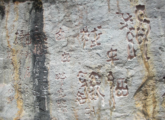 從此,天書的面目即為翟鴻錫本所示,那些附庸風(fēng)雅的官僚成為了千夫唾棄的罪人。盡管如此,清未還是有位叫徐印川的貴州提督,敢冒天下之大不韙,在天書崖面上,手寫了一個(gè)草書的"虎"字,以求同天書千古不朽。這位徐提督實(shí)乃一位討厭的古跡破壞者,在筑地名勝風(fēng)景區(qū),仙人洞的山壁上,還有其題詠景物的石刻詩。(有專家認(rèn)為草書"虎"字,乃周達(dá)武所為,權(quán)當(dāng)一說吧。)