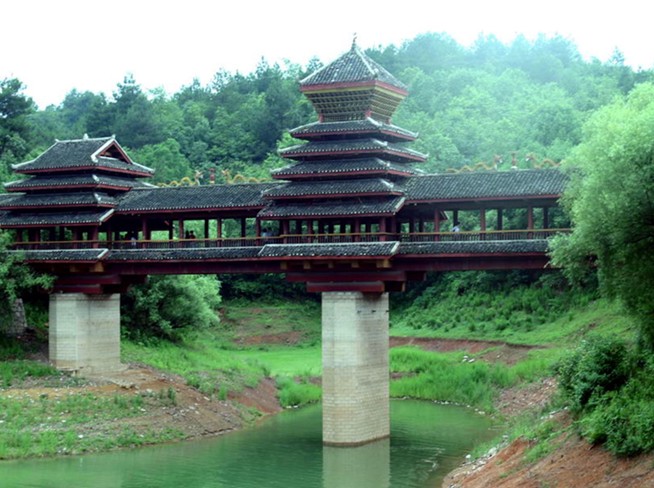 花橋是侗鄉(xiāng)跨越溪河、避雨納涼、點(diǎn)綴風(fēng)景,集多種用途于一體的橋梁。它的起源還流傳著許多優(yōu)美的神話傳說。